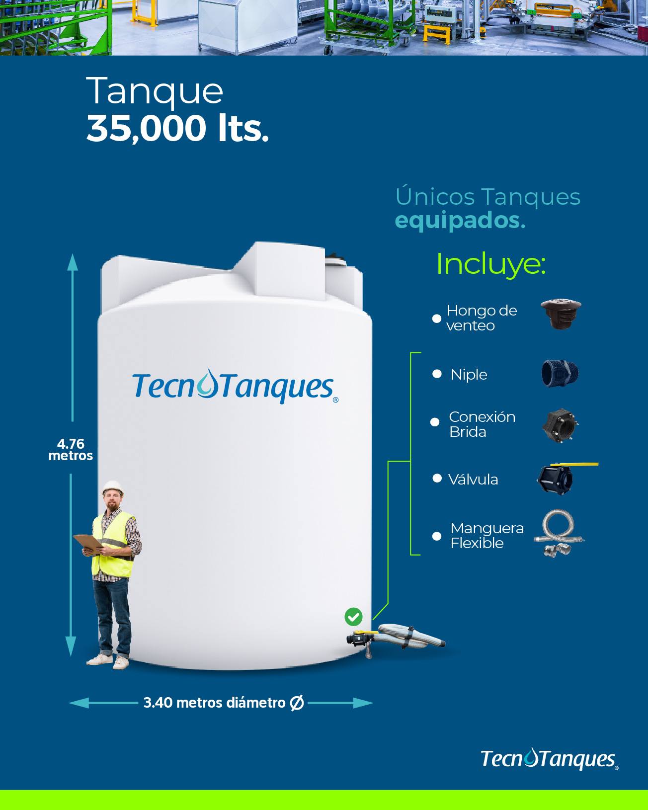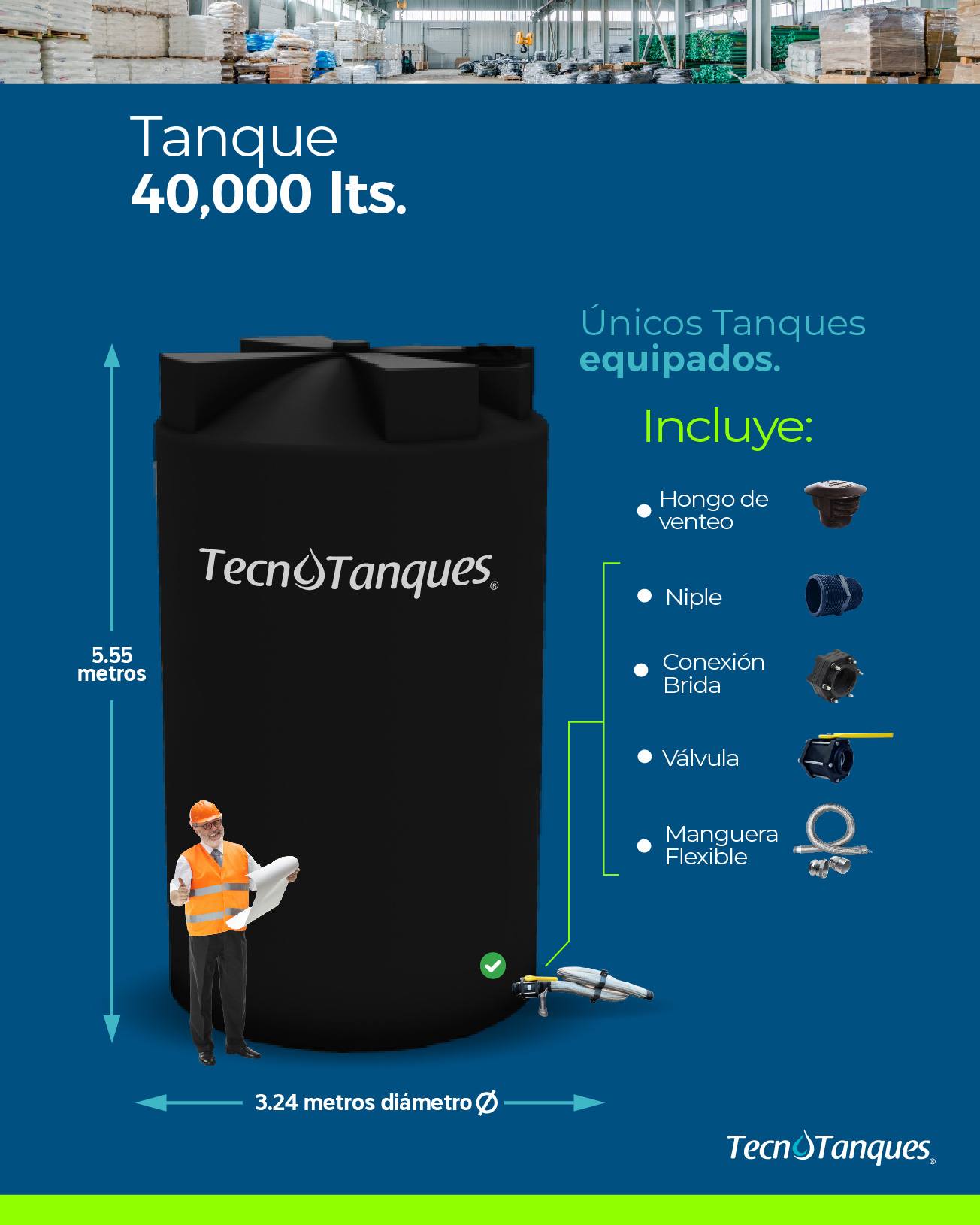 Otro beneficio atractivo de un tanque industrial, es el ahorro en espacio de almacenamiento, ya que en lugar de utilizar 10 Tanques de 10mil litros, se puede almacenar la misma cantidad de manera vertical con un tanque de 40,000 Litros.
